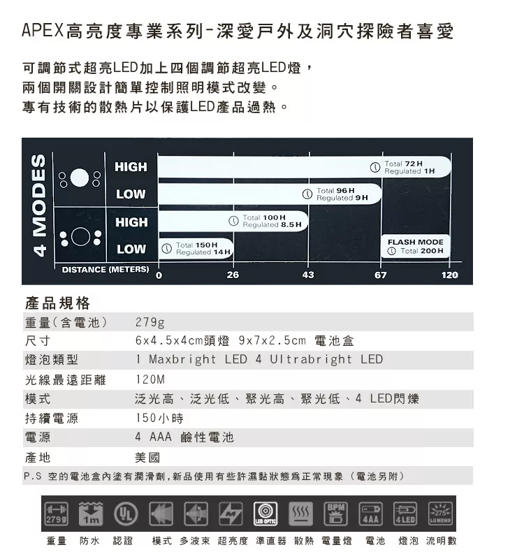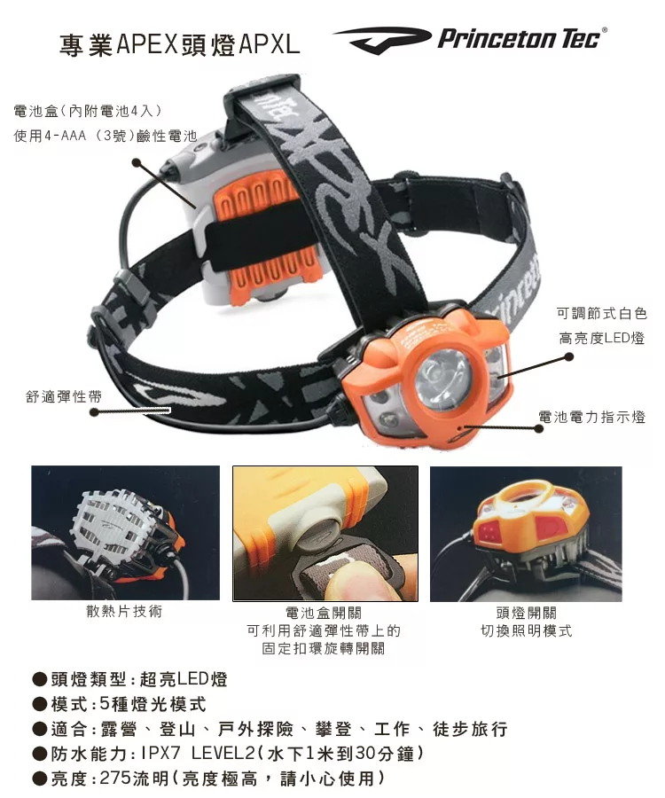 博客來e-coupon PrincetonTec 專業APEX 頭燈 (275流明)黑色